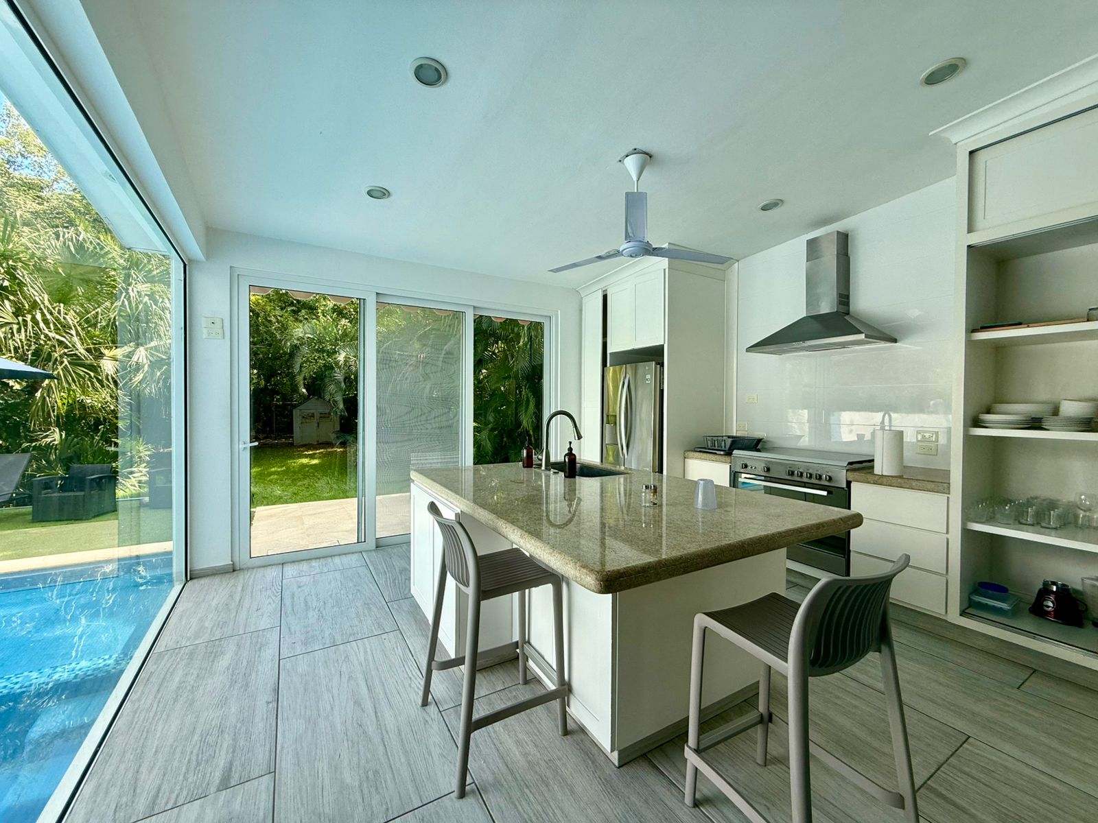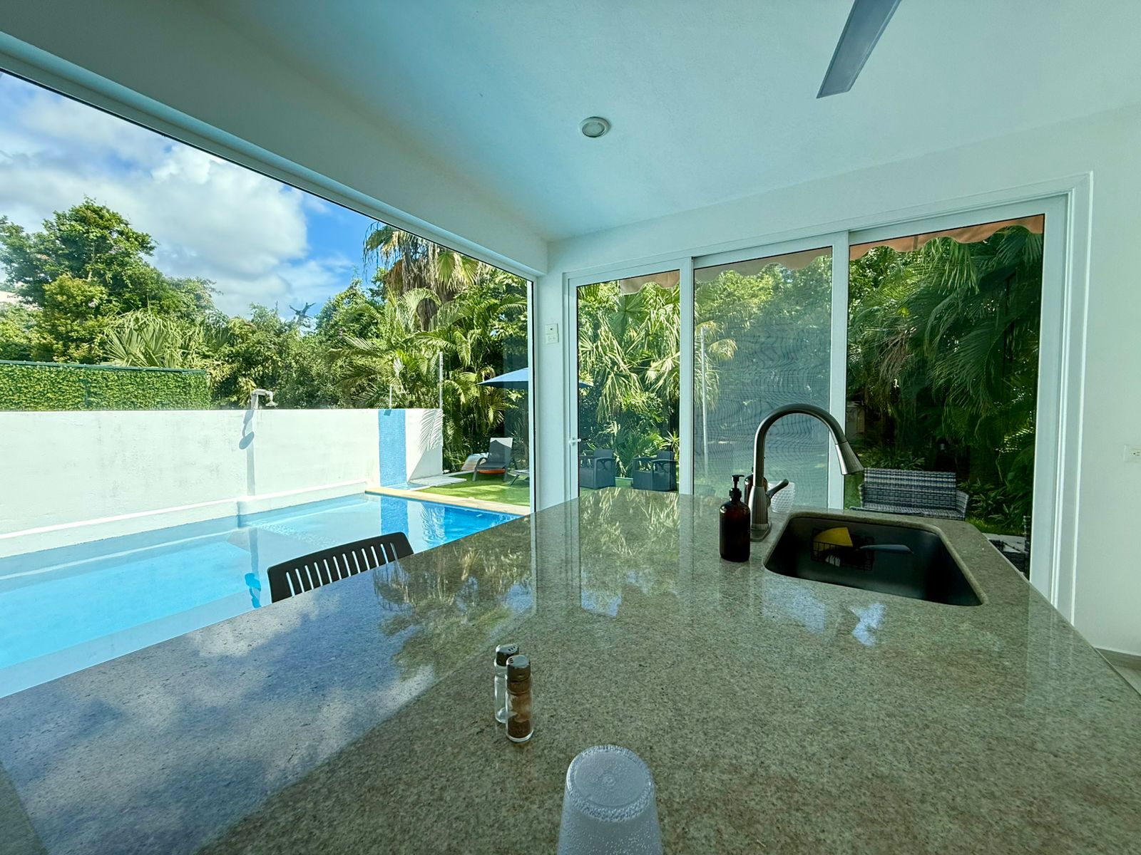 Welcome to a home that feels like a private oasis. This beautifully remodeled 4-bedroom villa is tucked inside Club Real, one of the most peaceful and green corners of Playacar Phase II. The moment you walk in, you’re surrounded by sunlight, clean modern finishes, and big windows that open up to the pool and the tropical landscape outside.